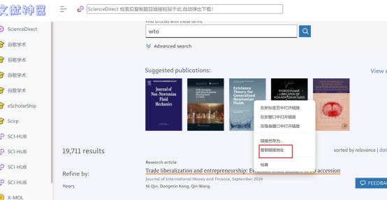 2。选择需要下载的论文,右击题目,选择【复制链接地址】。(不可以点击题目进去,点击题目进去就无法复制题目链接了!!!)。